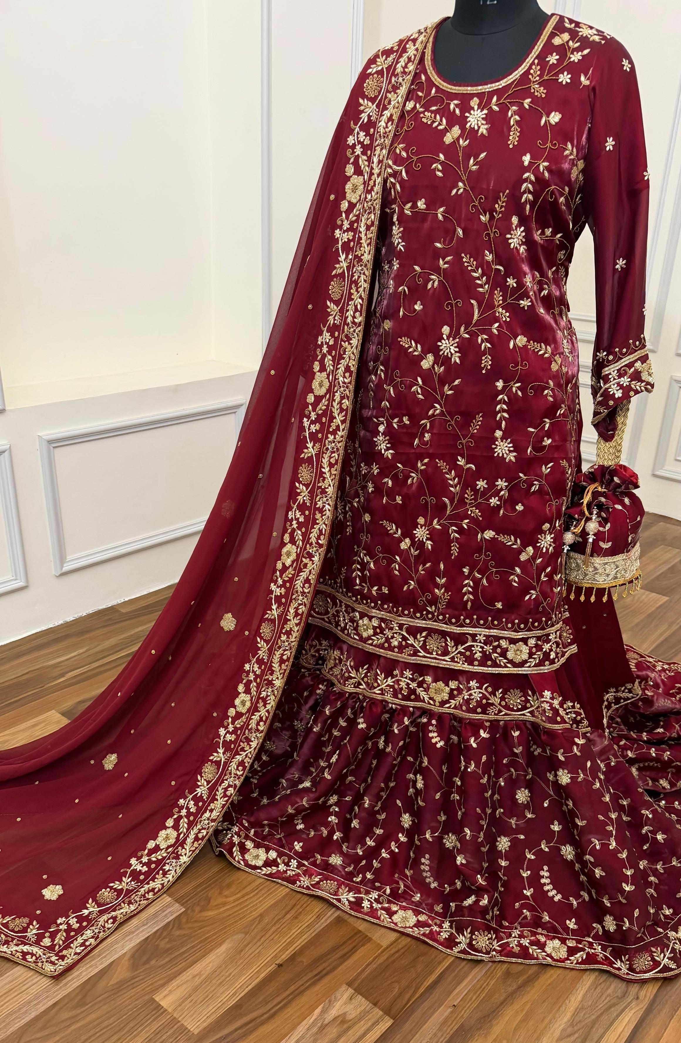 Strawberry Banarasi Kimkhab Silk 3 Piece Suit